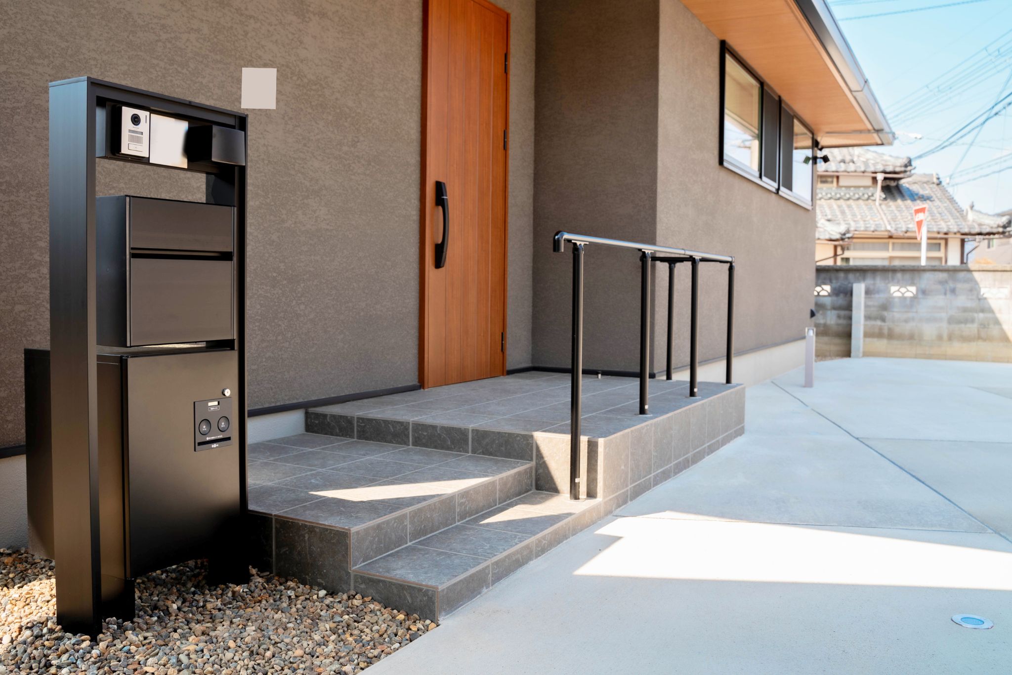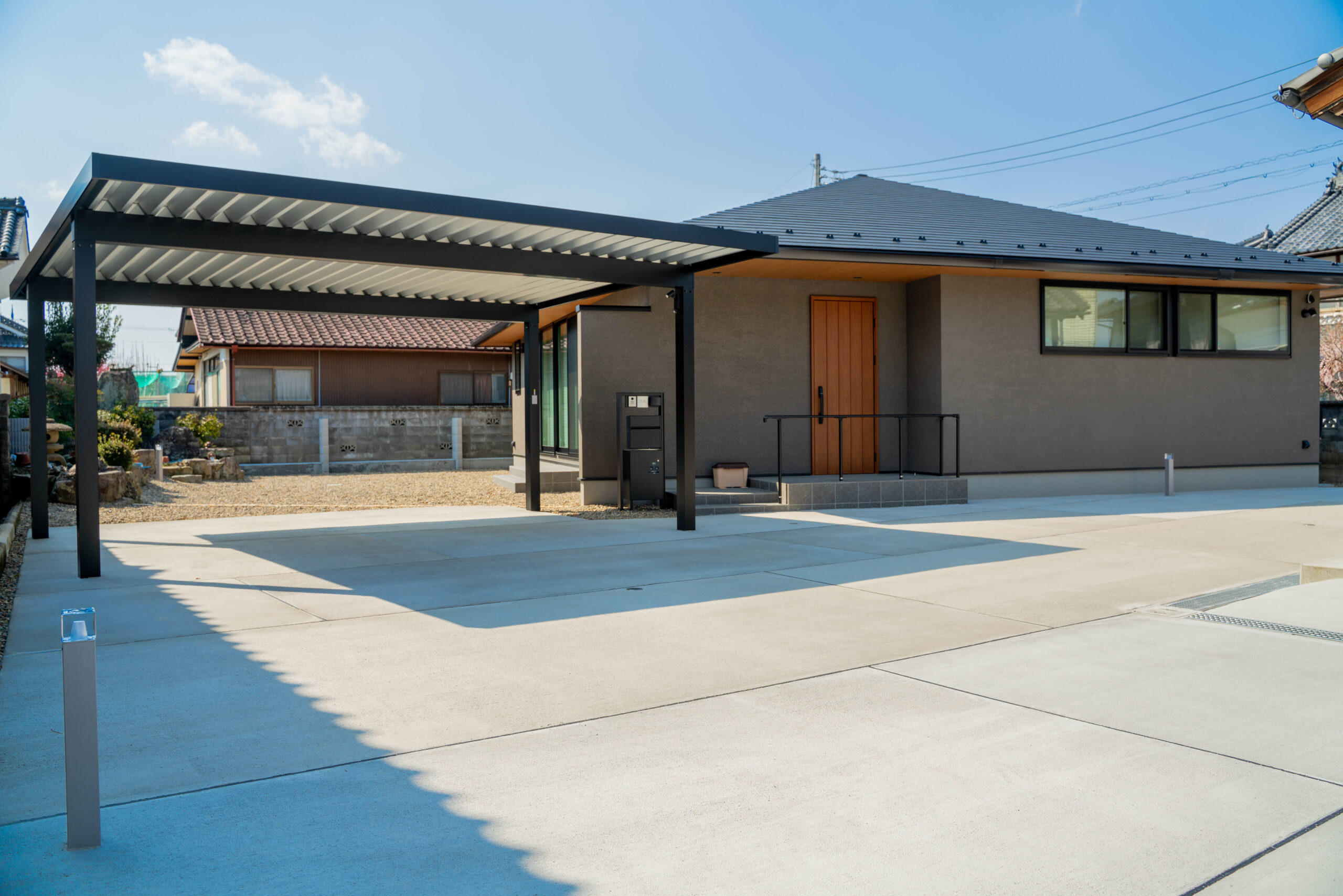 昼夜問わず、シンプルでスタイリッシュな印象を保てる外構に仕上げています。