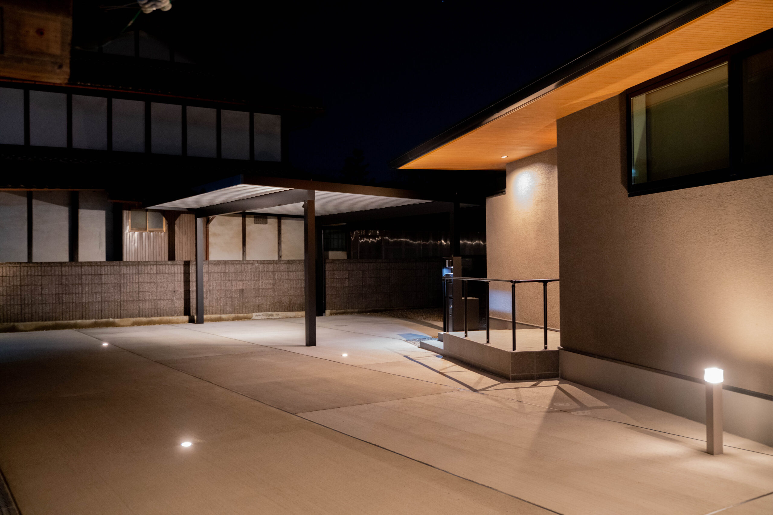 京都府福知山市で、夜も明るく過ごせるスタイリッシュな外構工事を行いました。