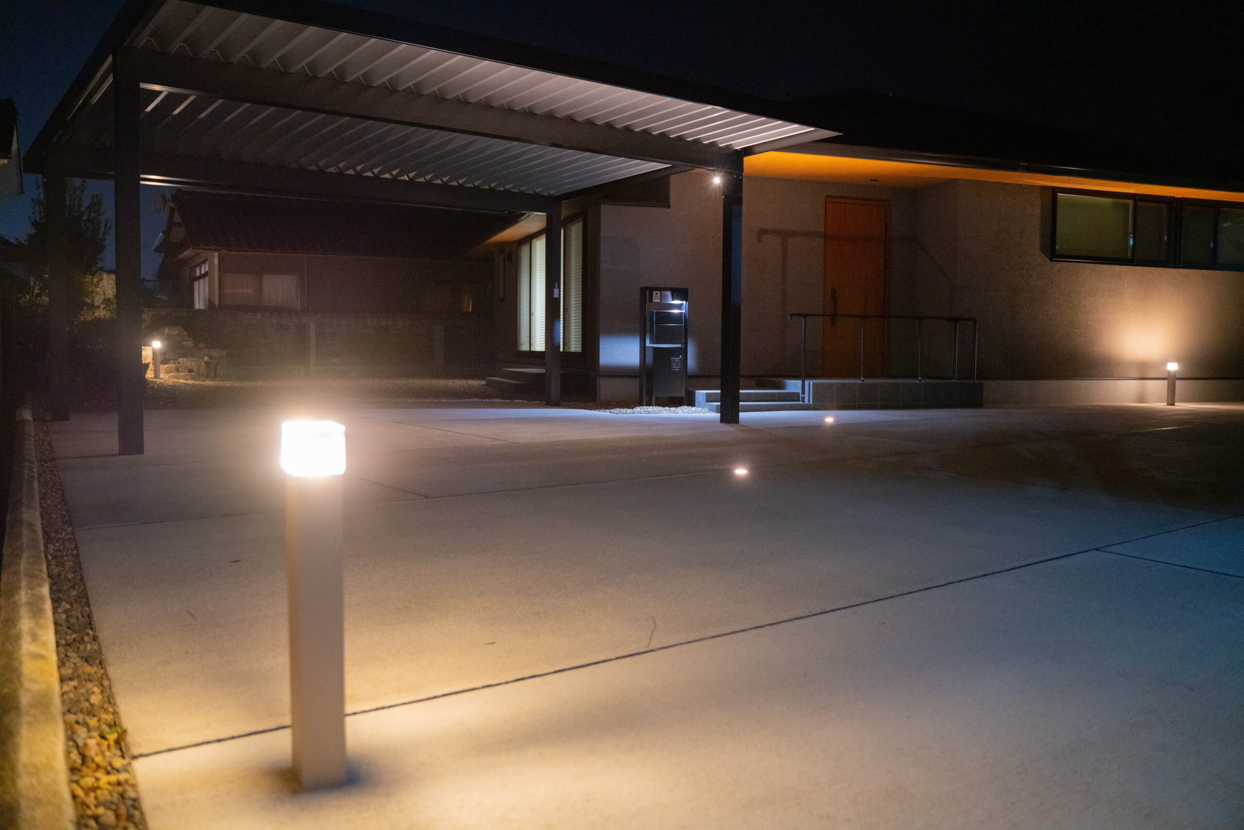・足元と建物まわりをバランスよく照らす照明計画